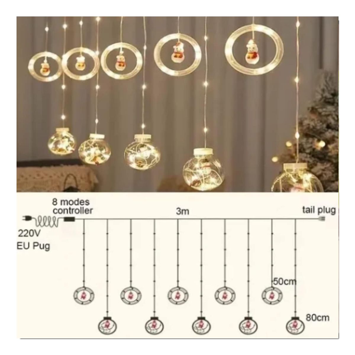 - Uso Versátil: Ideal para decorar el árbol de Navidad, ventanas, repisas o cualquier área que desees iluminar con el espíritu navideño.