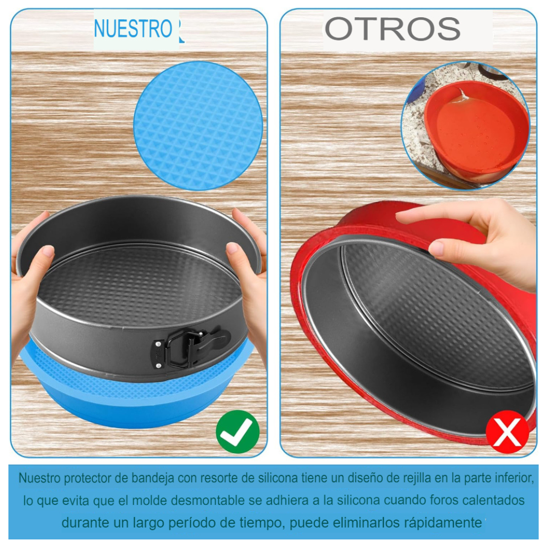 Diseño Antiadherente: La superficie antiadherente evita que el molde se pegue a la silicona, facilitando la extracción de la tarta y su limpieza.